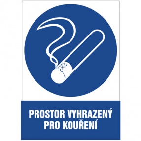 Tabulka - PROSTOR VYHRAZENÝ PRO KOUŘENÍ Druh materiálu: samolepka, velikost: A4 30x21 cmSkladem 336 Kč30 Kč bez DPH