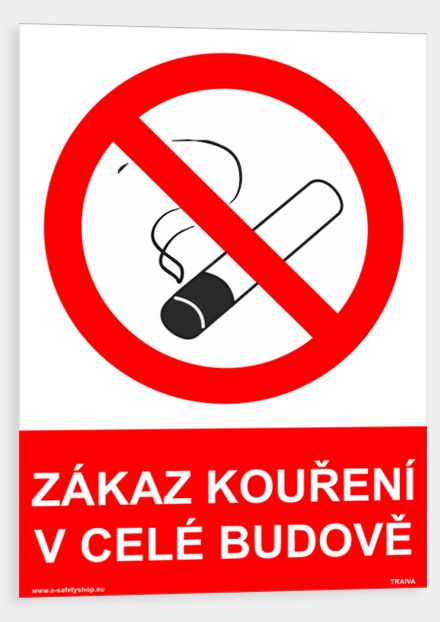Tabulka - ZÁKAZ KOUŘENÍ V CELÉ BUDOVĚ Druh materiálu: sam.Zákaz kouření v celé budově, velikost: A4 30x21 cmSkladem > 536 Kč30 Kč bez DPH